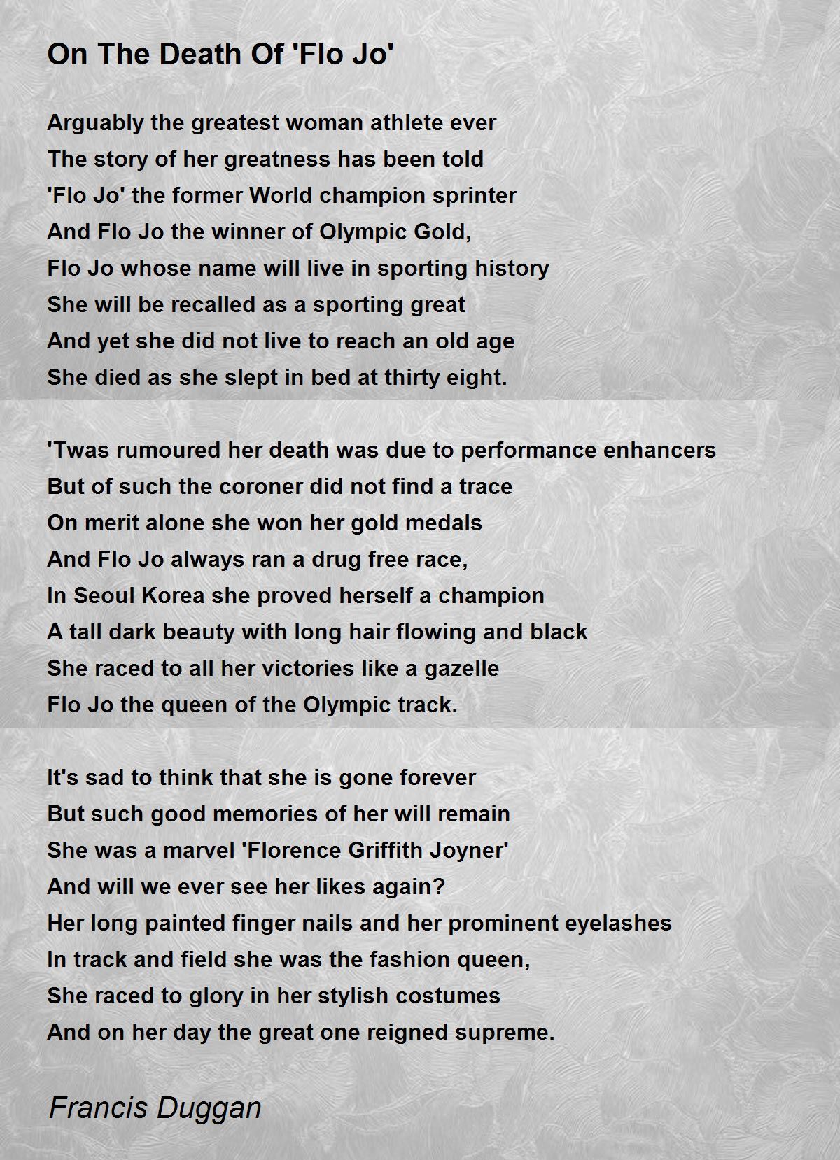 Here is the official explanation of your death, followed by contradictory. Stay at home, protect the nhs, save lives. Florence delorez griffith joyner (born florence delorez griffith; Flo jo, as she was most commonly known, was wife and friend to al joyner and loving mother to her rest in peace, flo jo. .been told 'flo jo' the former world champion sprinter and flo jo the winner of olympic gold, flo bed at thirty eight.
